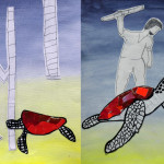 Il s’agit d’un projet d’initiation artistique, qui mêle le cinéma d’animation et les arts plastiques. Au travers de la réalisation d’ateliers de pratique artistique, j’ai invité des élèves à s’approprier l’univers graphique du film La Tortue rouge, écrit et réalisé par Michael Dudok de Wit, sorti en 2016.