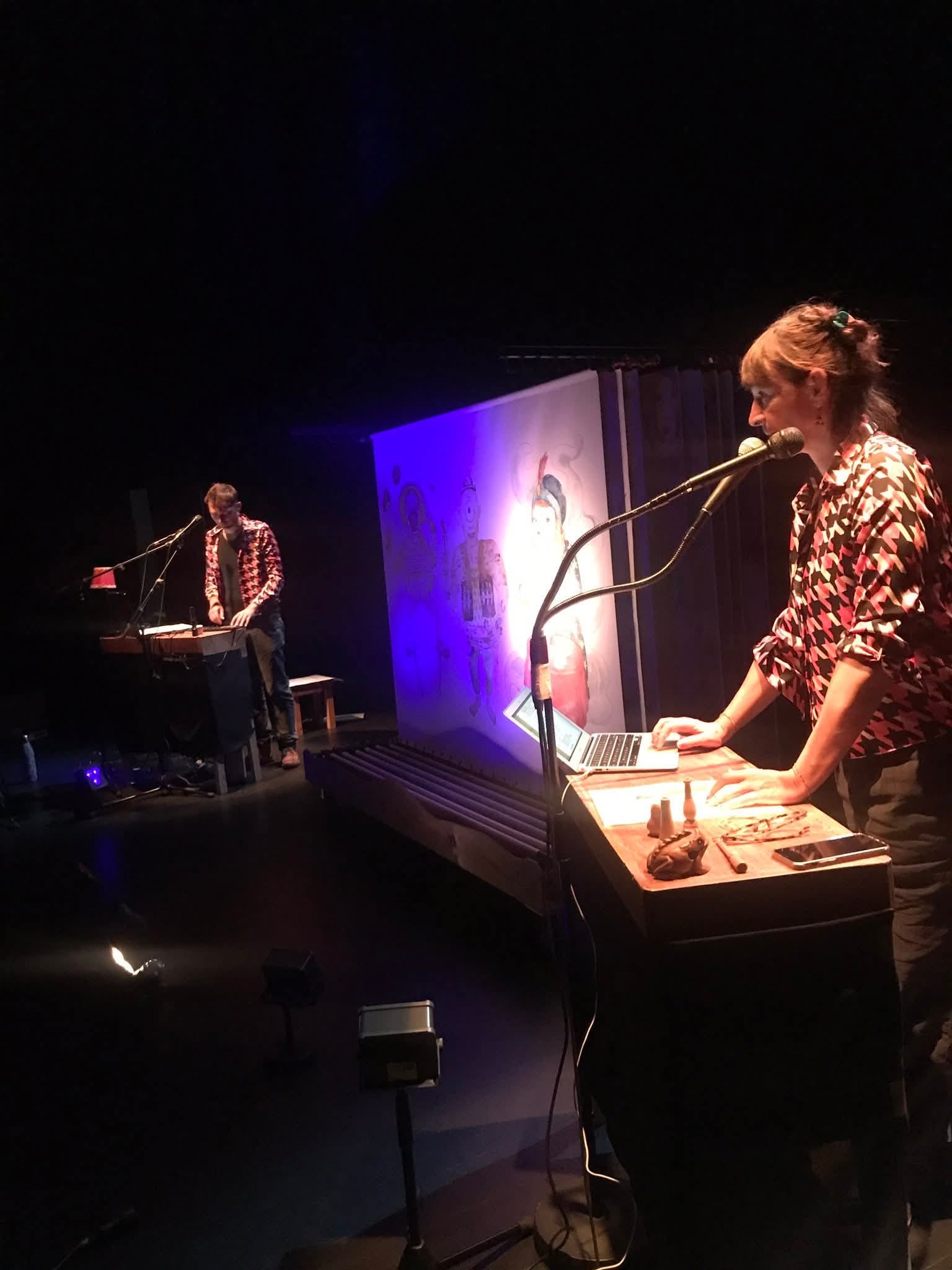 Une histoire racontée, ambiancée, chantée et illustrée.