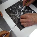Durant ce stage nous avons exploré la thématique de la nature, en s’appuyant sur mes productions issues de la série « Plus une fleur ». Les participants ont pu mixer plusieurs motifs et techniques. Associé au collage, le monotype permet une approche très picturale de l’image et de très nombreuses expérimentations sur l’hybridation. Atelier de gravure, Beaux arts, école d’arts plastiques de Poitiers, avril 2022.